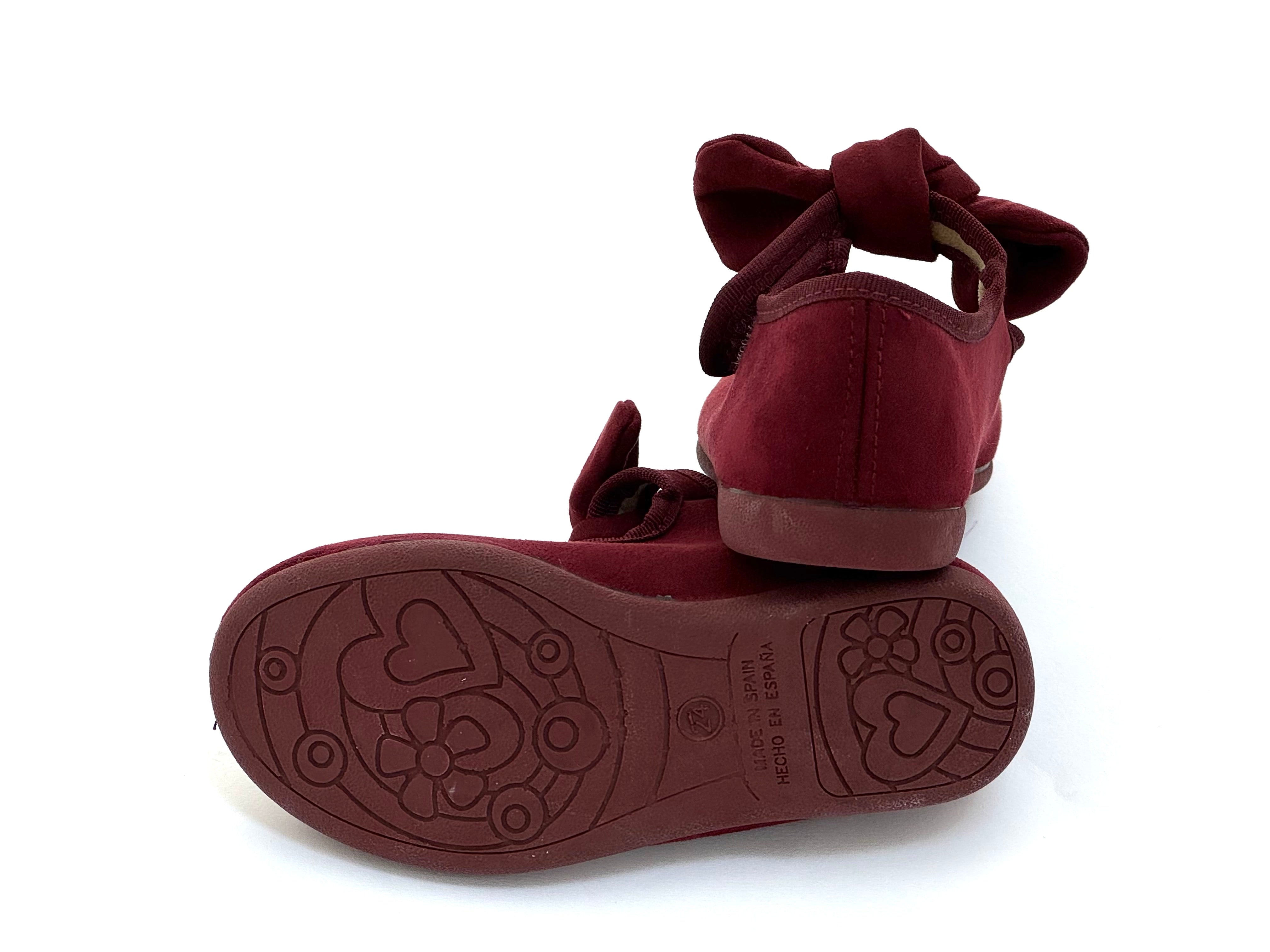 Mercedita en serratex, traba con cinta adherente y moño, suela de goma a tono. Hecho en España.
